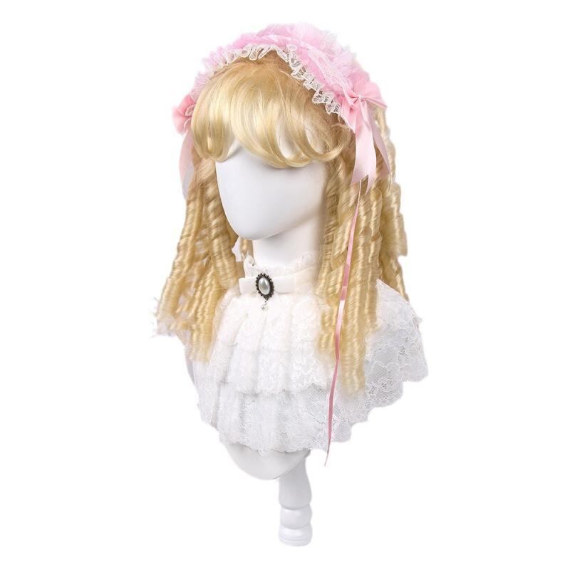 ウィッグ レディース ロリータ レトロ 宮廷風 フルウィッグ ゴールド ロングカール ハイレイヤー 斜め前髪 ランタンカール ローマカール 耐熱ファイバー 自然な仕上がり 快適な着け心地 お手入れ簡単 イベント コスプレ パーティー ハロウィン