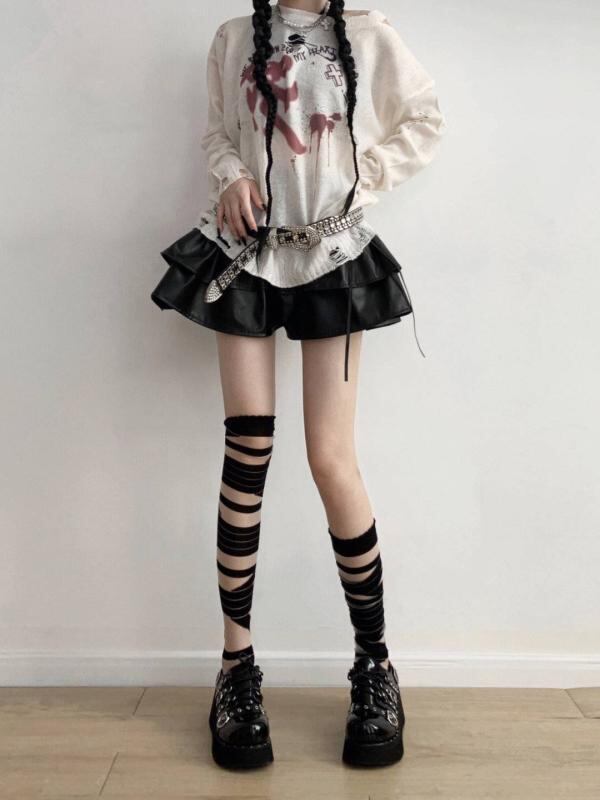 ニーハイソックス レディース 日系 地雷系 ロリータ風 JKスタイル クロスデザイン 薄手 吸汗速乾 ポリエステル 無地 ブラック ホワイト 普段使い
