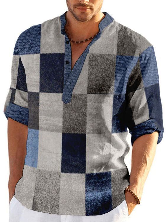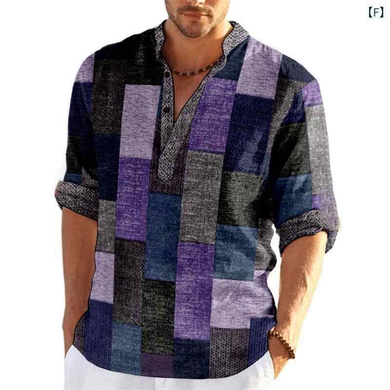 シャツ メンズ 男性用 ルーズフィット ビッグシルエット ストライプ柄 スラブ麻 竹繊維リネン 薄手 長袖 スタンドカラー ウォッシャブル イージーケア 普段使い 春 秋 カジュアル トップス