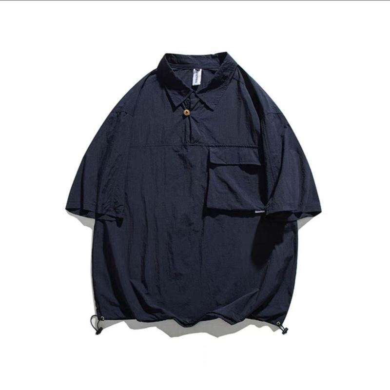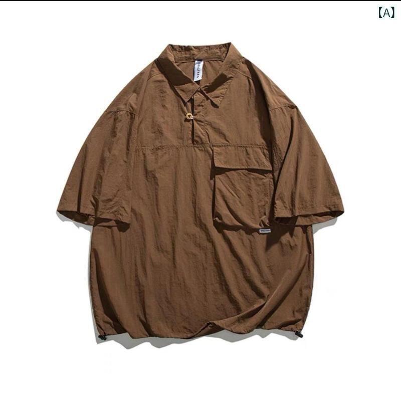 シャツ メンズ ポロシャツ 半袖 ワークスタイル 和風 原宿 薄手 ゆったり ビッグシルエット カジュアル トップス 羽織り ポリエステル ウォッシャブル シワになりにくい ポケット付き 夏 普段使い