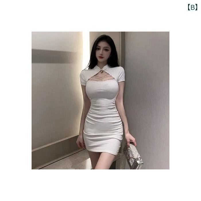 ワンピース レディース 大きいサイズ ゆったり 体型カバー 夏 セクシー エレガント レース シースルー タイト ミニ丈 チャイナドレス風 改良版 旗袍襟 ポリエステル 黒 白 オフィス 通勤 フォーマル