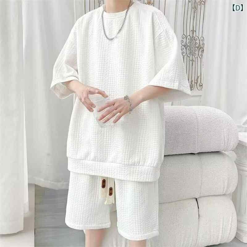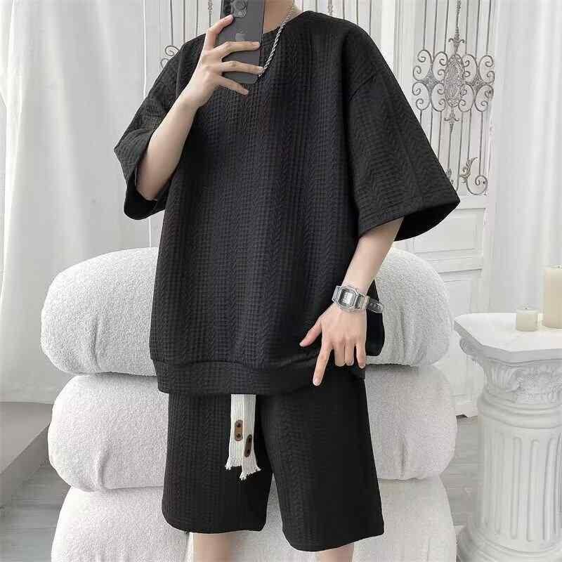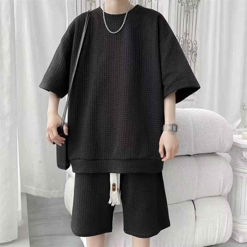 ・カテゴリ: メンズカジュアルセットアップ・スタイル: ストリートカジュアル・厚さ: 標準・トップス: Tシャツ・袖丈: 五分袖・パンツ丈: ハーフ丈・主な素材: ポリエステル100%・着用シーン: カジュアル・カラー展開: ブラック、ホワイト・サイズ展開: M、L、XL、2XL、3XL、4XL、5XL