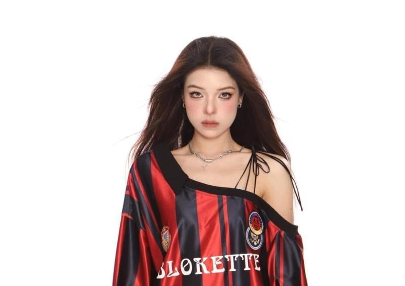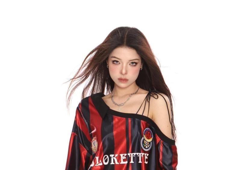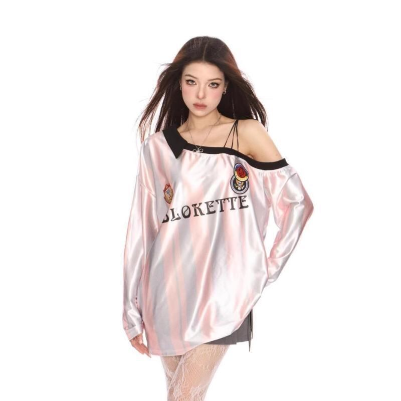 スウェット レディース アメリカン レトロ ミラノ ジャージ風 オフショルダー 斜め肩 結び紐 長袖 トップス