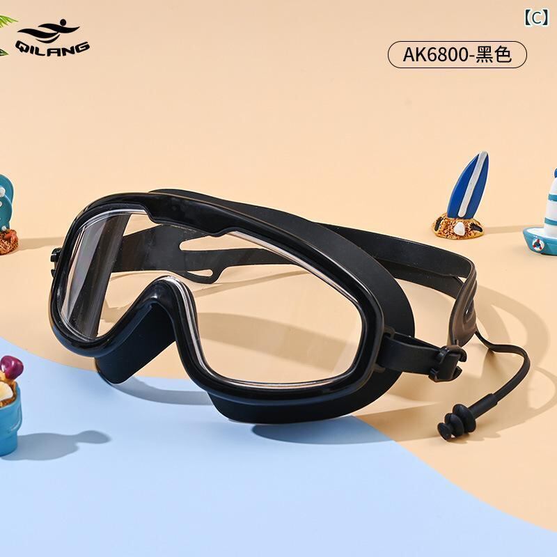 スイムゴーグル 大人用 ユニセックス PCレンズ クリアレンズ 防水 曇り止め 一体型耳栓 大型フレーム ワイドビュー 水泳 競泳 トレーニング 潜水 シュノーケリング フィットネス 多色展開