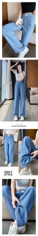 デニムワイドパンツ レディース 夏 薄手 ハイウエスト ドレープ感 ストレート カジュアル 接触冷感 ポリエステル ライトブルー 日韓風 リラックス