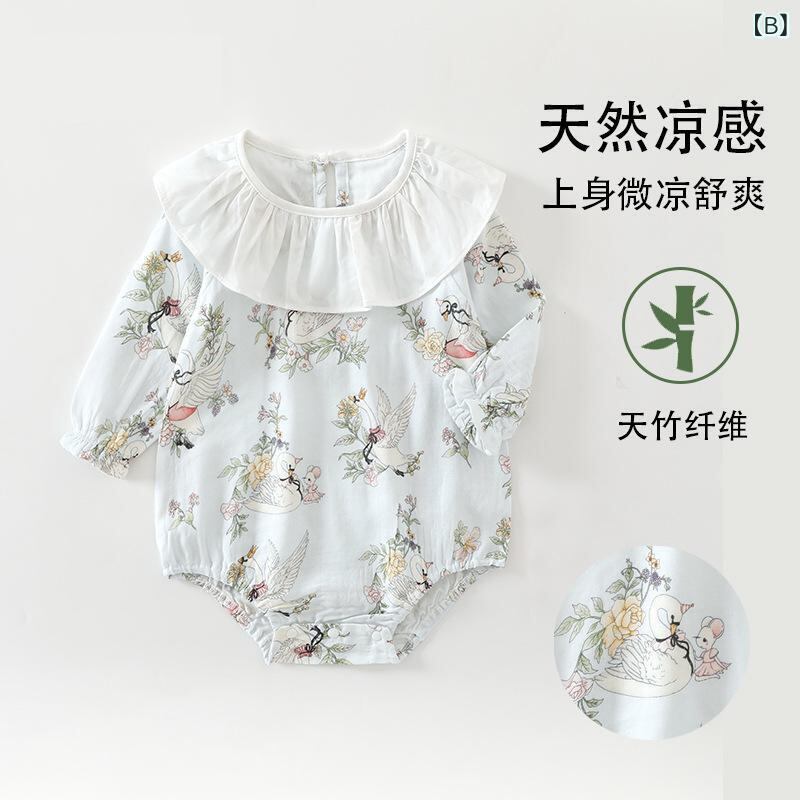 ロンパース 新生児 ベビー 赤ちゃん 女の子 安心 安全 長袖 薄手 夏用 竹繊維 綿 ガーゼ 吸湿速乾 通気性抜群 三角カバーオール ボディースーツ 肌に優しい ソフトタッチ 韓国風 普段使い お部屋着 パジャマ
