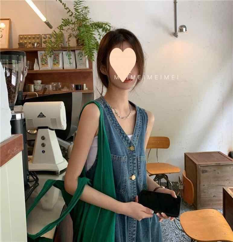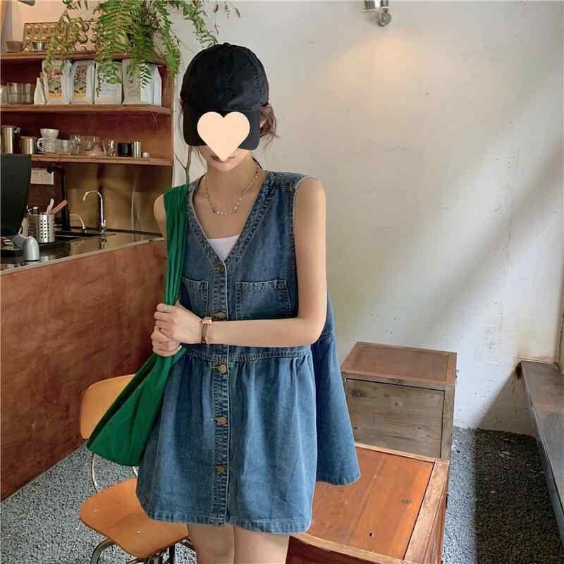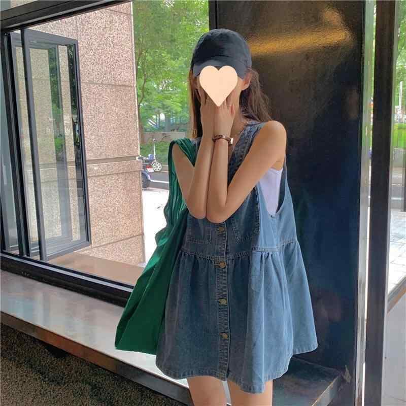 ワンピース ノースリーブ デニム レディース 夏新作 韓国ファッション ゆったり 小柄 カジュアル Vネック バックストラップ 短い丈 デニムワンピース 接触冷感 通気性抜群 お出かけ デート