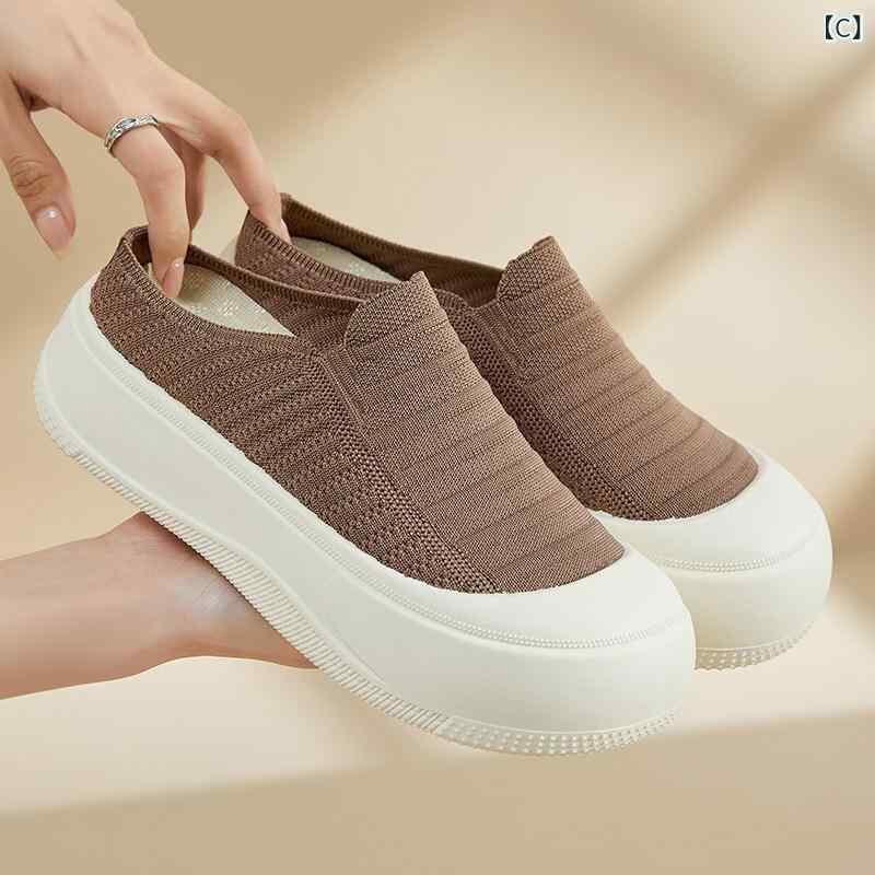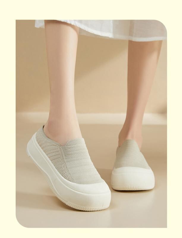 厚底ミュール レディース シンプル ニット素材 通気性 快適 軽量 カジュアル デイリーユース 万能 ラウンドトゥ
