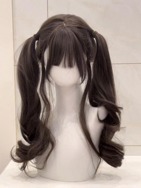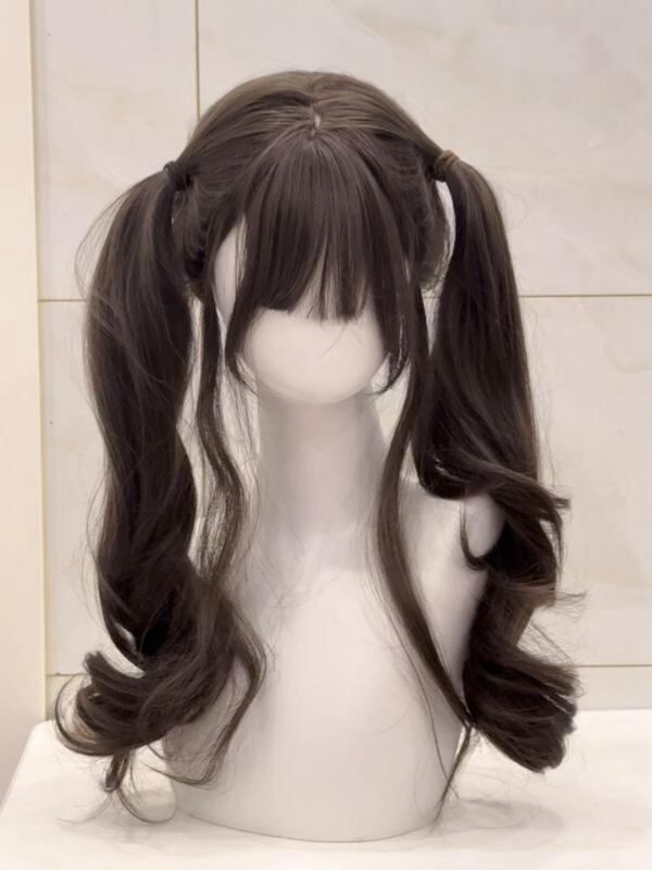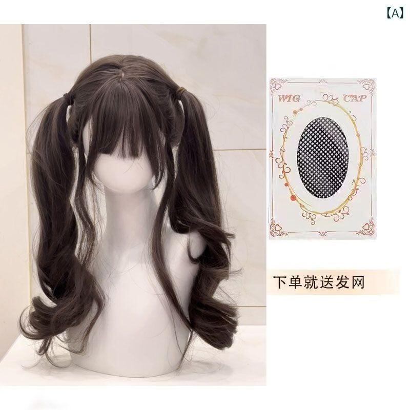ウィッグ レディース フルウィッグ ロリータ風 ミディアムロング 60cm ロングカール ふわふわ 小顔効果 自然 耐熱ファイバー 前髪調整可能 クールブラウン ダークブラウン ヘーゼルグレーブラウン