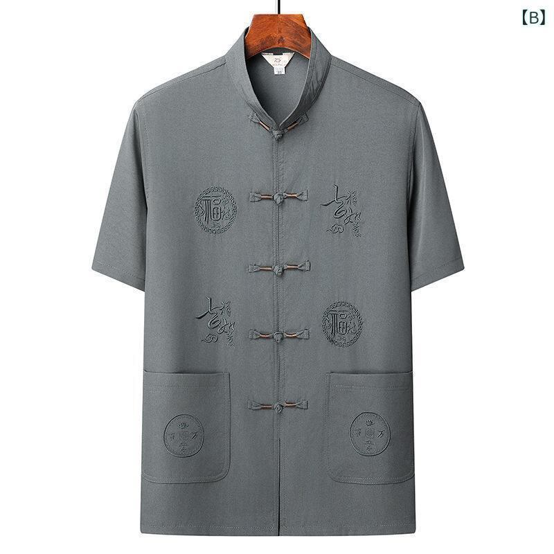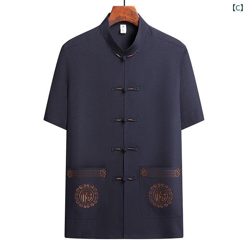 セットアップ メンズ シニア 中高年 父親 祖父 中国風 チャイナ服 麻混 薄手 軽量 ゆったり 夏 普段使い