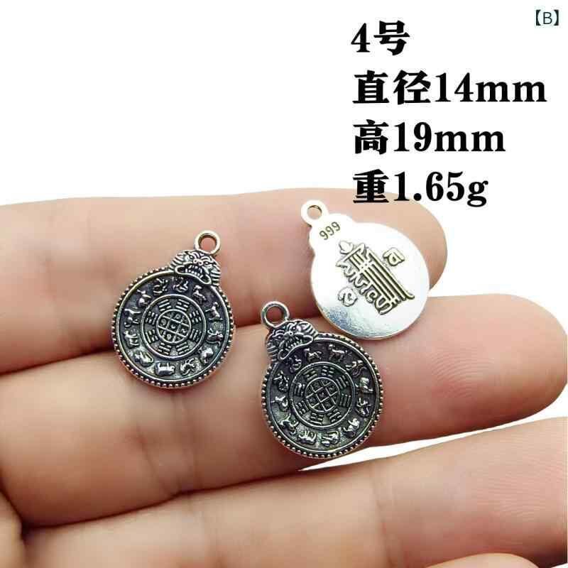 ペンダントトップ 九宮八卦 十二支 チベットシルバー合金 電鍍加工 DIY アクセサリーパーツ ブレスレット 数珠 腕輪 ハンドメイド素材 民族風 レトロ エスニック 吉祥模様 縁起物 開運 お守り