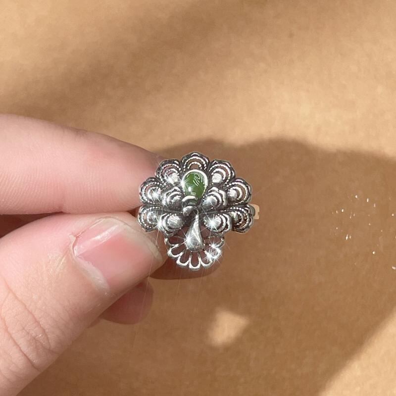 指輪 レディース 鳳凰モチーフ レトロ アンティーク調 銅製 樹脂加工 立体 個性的 エスニック 民族風 オープンリング フリーサイズ サイズ調整可能 アクセサリー