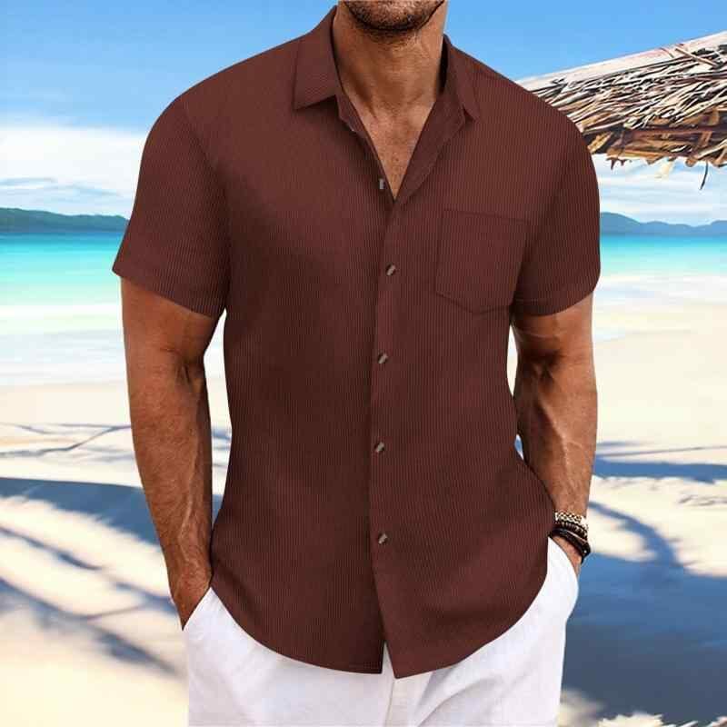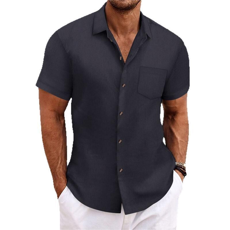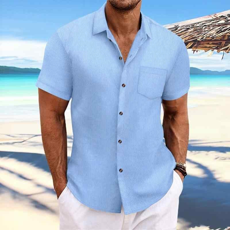 シャツ メンズ ストライプ 半袖 ゆったり カジュアル 普段使い 襟付き 通気性 綿混 ポリエステル 洗濯機可 夏用