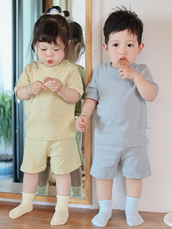 パジャマ 女の子 ベビー キッズ 赤ちゃん ルームウェア 部屋着 寝巻き 寝間着 綿100% コットン 薄手 薄地 夏用 涼しい シンプル 無地 通気性 肌触り良い 柔らかい かわいい