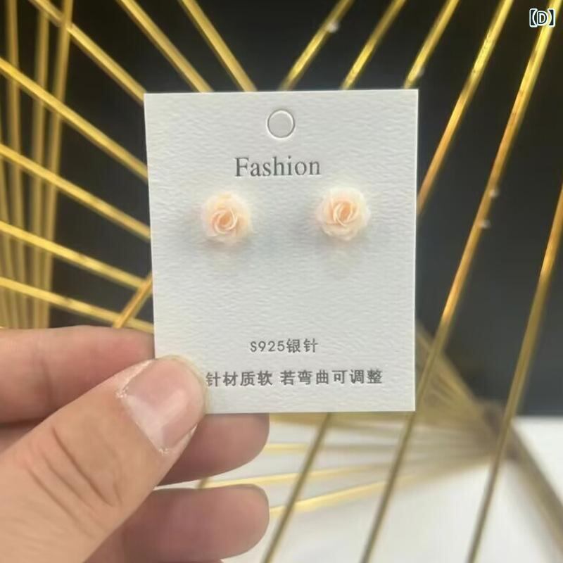 ピアス レディース フレンチスタイル ローズ フラワーモチーフ ミニスタッド アクリル製 高級感 エレガント 軽やか フェミニン トレンドファッション 万能 カジュアル デート フォーマル ピンク レッド グリーン シャンパンカラー