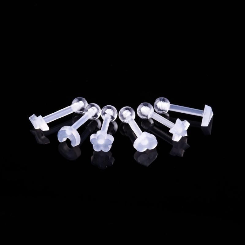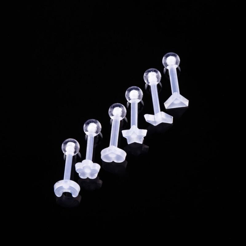 ピアス 男女兼用 ボディピアス アクリル製 透明 シークレット ヘリックス トラガス 鼻用 耳骨 軟骨 ストレートバーベル 花 ハート 星 三角 稲妻 月 軽量 付けっぱなし