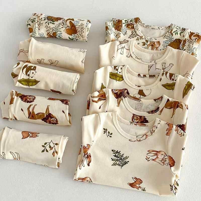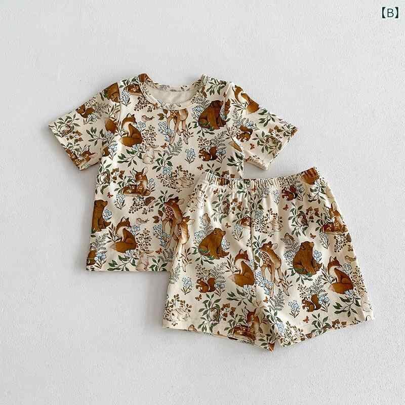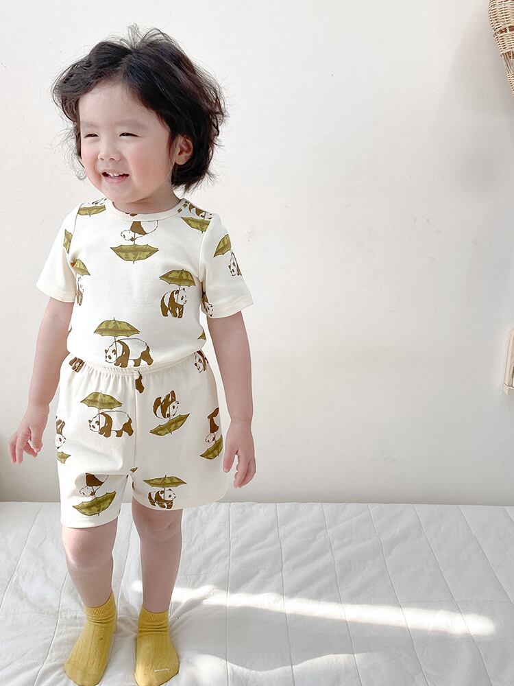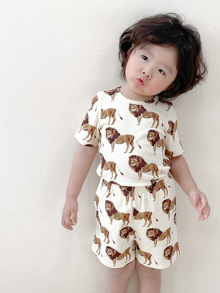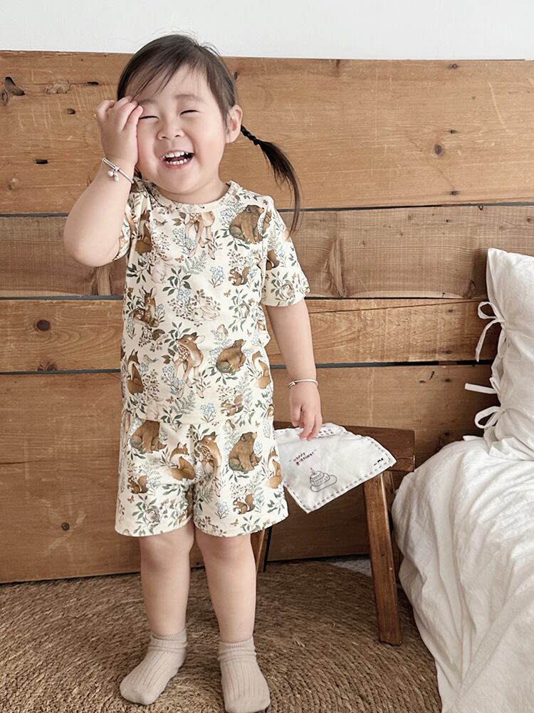 パジャマ キッズ ベビー 子供用 男女兼用 ルームウェア 部屋着 北欧風 カジュアル 綿 コットン100% 半袖 動物柄 アニマル柄 かわいい 柔らか 肌触り 快適 上下セット