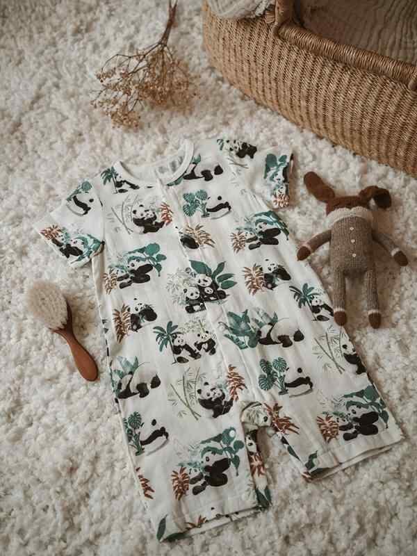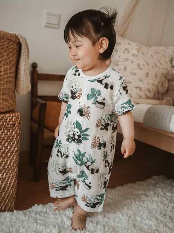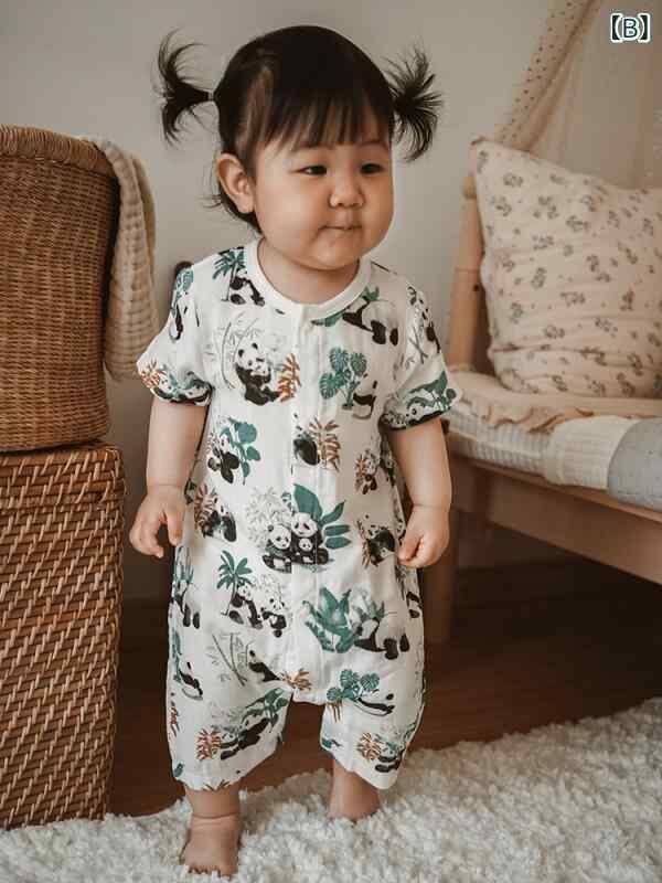 ロンパース ベビー服 赤ちゃん 子供服 竹繊維 ガーゼ 再生繊維 薄手 夏用 半袖 前開き スナップボタン 男女兼用 カバーオール プレオール