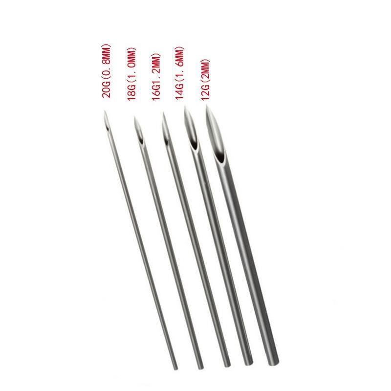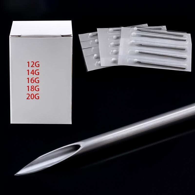 ピアシング ニードル 男女兼用 使い捨て 316L サージカルステンレス プロフェッショナル カテーテル針 ボディピアス用 ツール シルバー 個包装 穴あけ