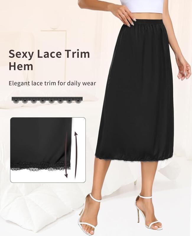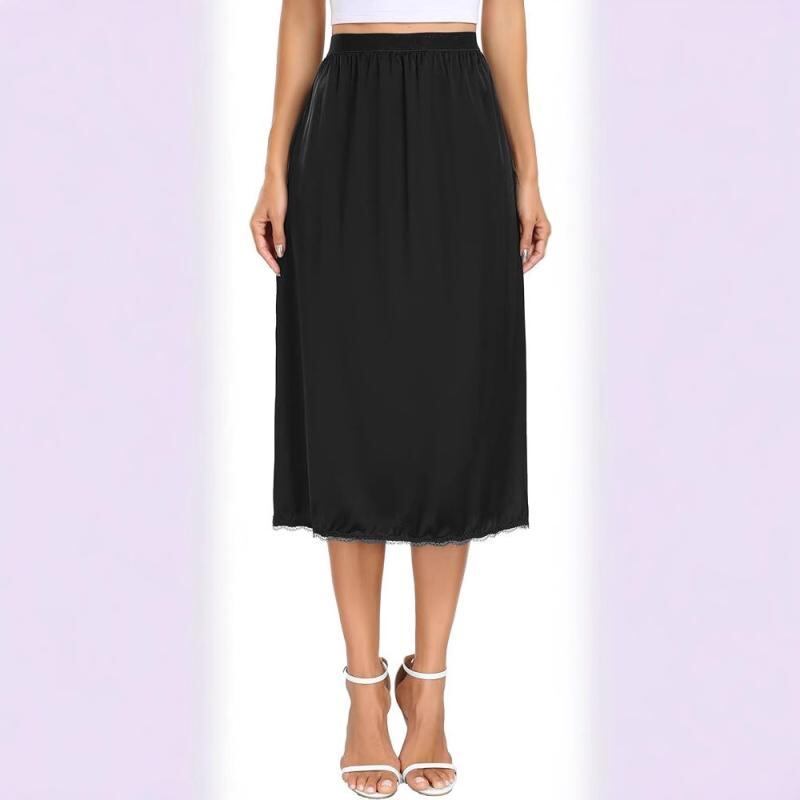 スカート レディース Aライン ミディ丈 サテン レース 切り替え 裏地付き 無地 ポリエステル 大きいサイズ ゆったり カジュアル デイリーユース