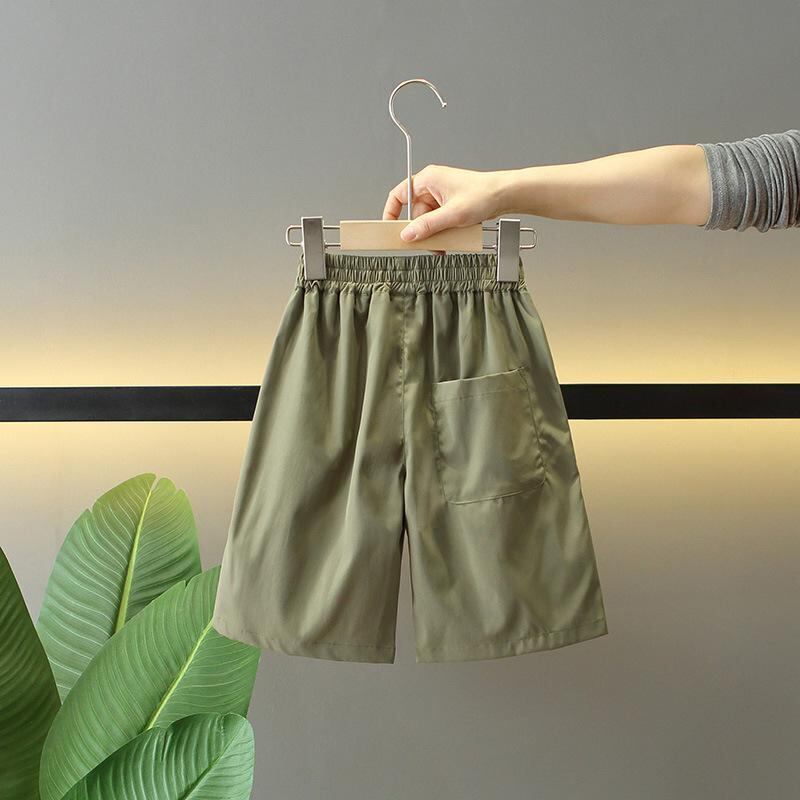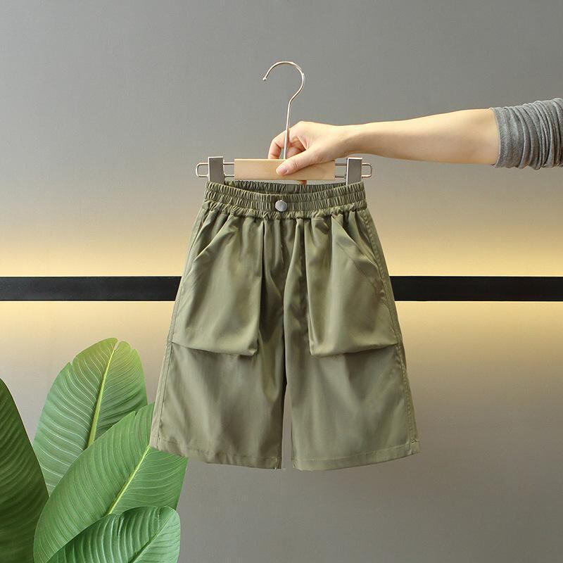 カーゴパンツ キッズ 男の子 薄手 夏用 軽量 速乾 ポリエステル 5分丈 ハーフパンツ カジュアル 普段使い アウトドア 通学 ミドルウエスト ゴムウエスト ブラウン カーキ
