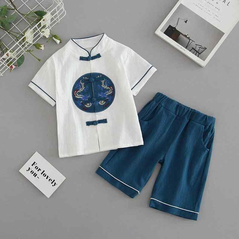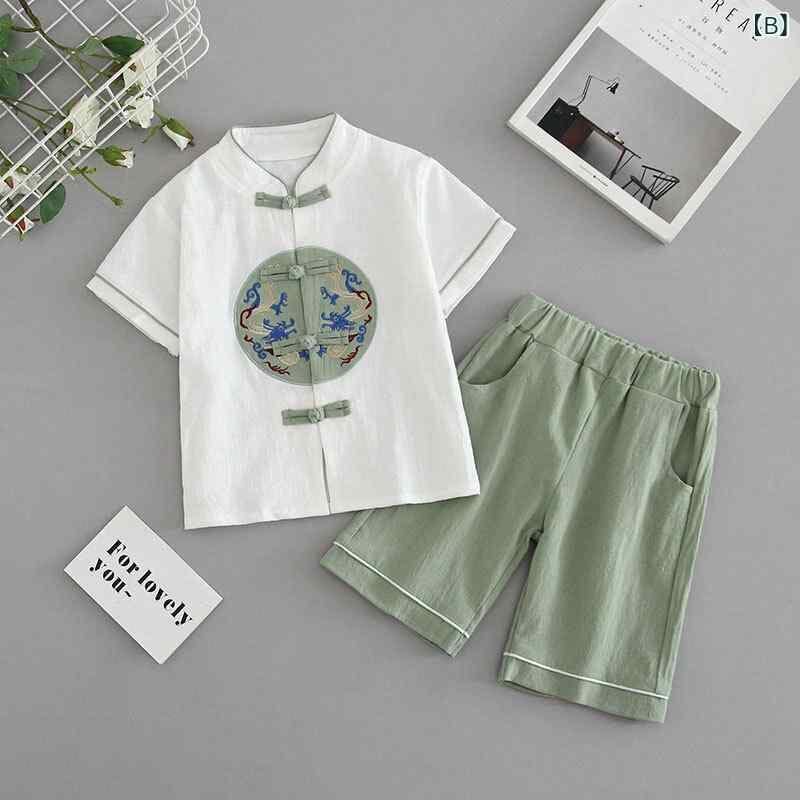 セットアップ キッズ 男の子 女の子 夏物 中国風 新中式 半袖 ショートパンツ 上下セット 綿100% ソフトタッチ 龍柄 アニマル柄 ブルー グリーン 普段着 部屋着 おしゃれ