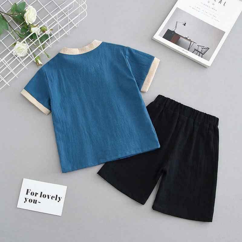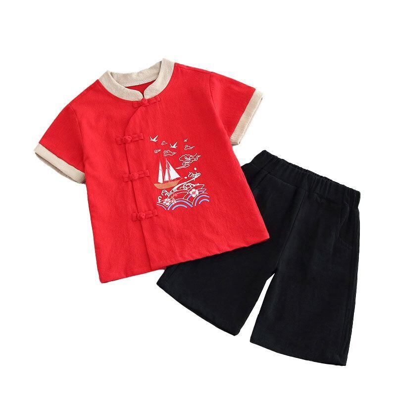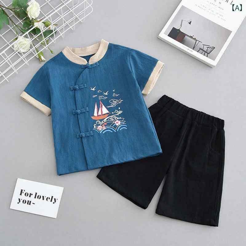 漢服 男の子 男児 キッズ 子供 夏物 薄手 セットアップ 中国風 唐装 民族衣装 発表会 イベント 舞台衣装 コスチューム 綿 コットン 上下セット