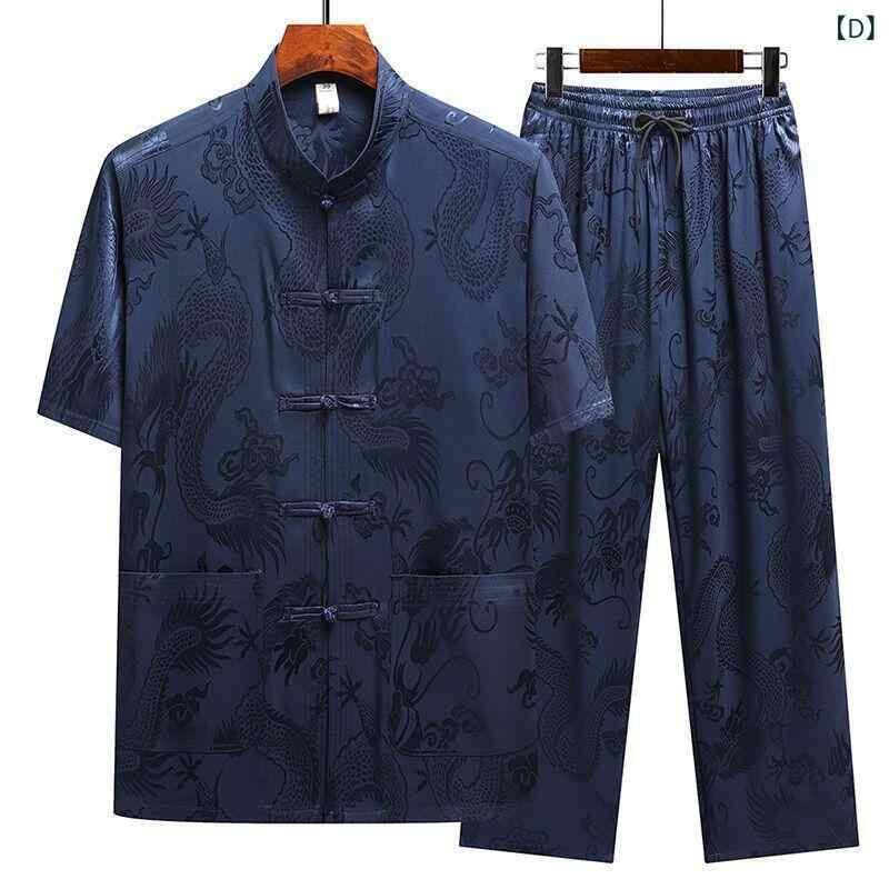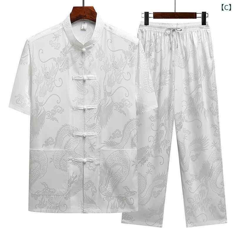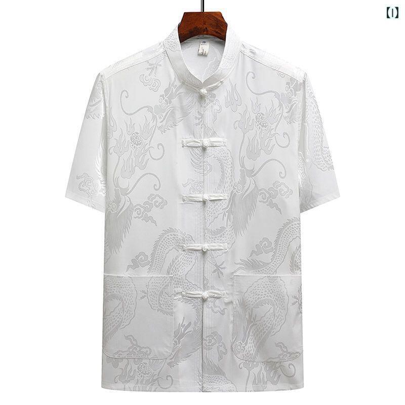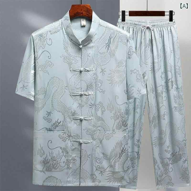 唐装 メンズ 男性 シニア 中高年 お父さん おじいちゃん 半袖 セットアップ 上下セット 中国風 接触冷感 ゆったり 大きいサイズ ポリエステル混紡 カジュアル 普段使い 夏用