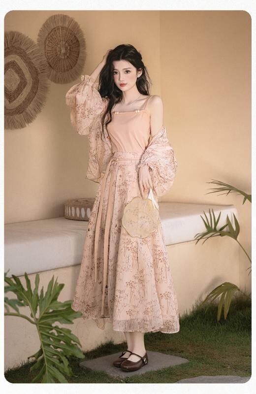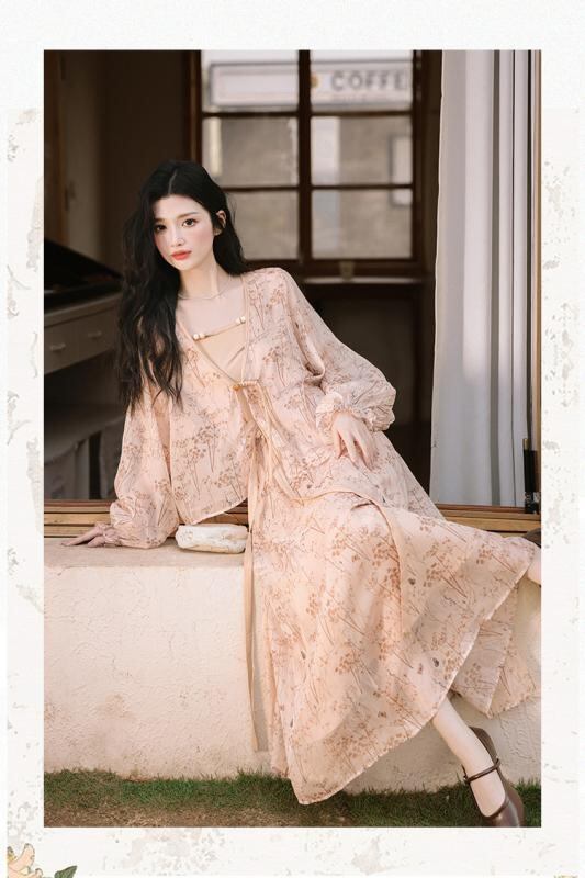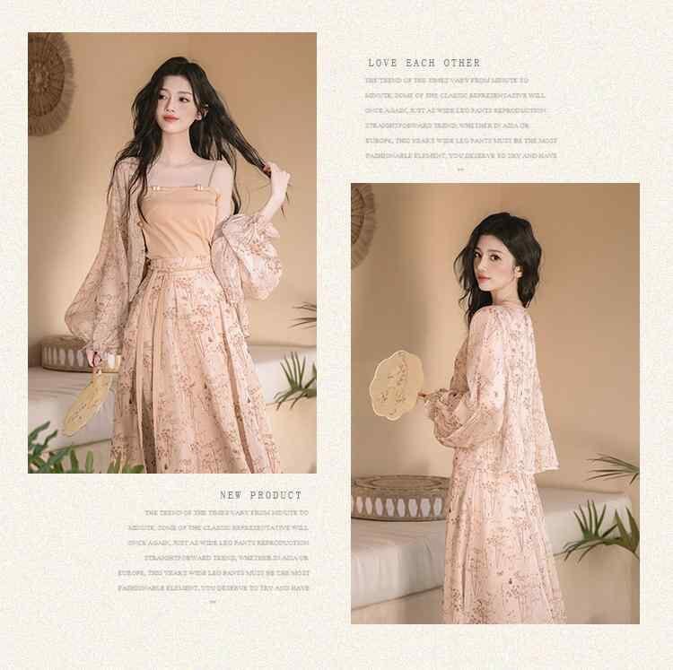 ワンピース レディース 大きいサイズ 夏 新チャイナドレス風 スリーピース セットアップ 花柄 プリント ロング丈 Aライン スクエアネック ノースリーブ ハイウエスト ポリエステル レトロ 中華風 ドレス
