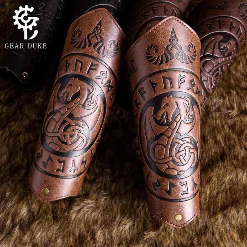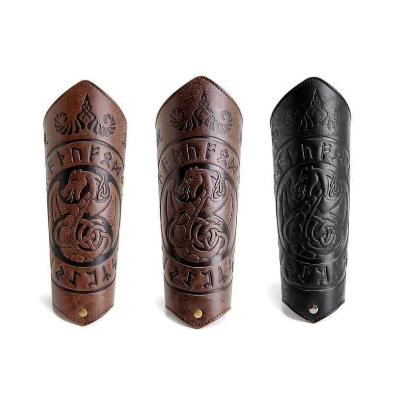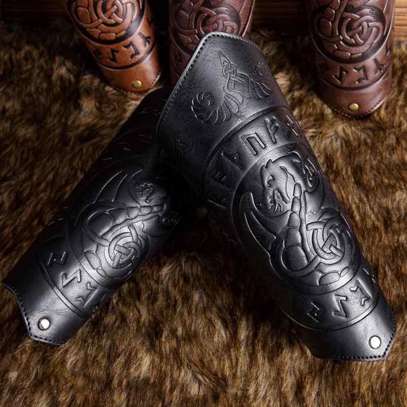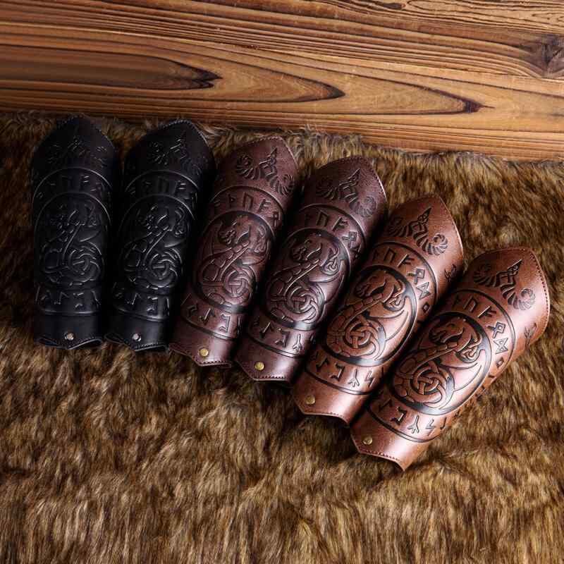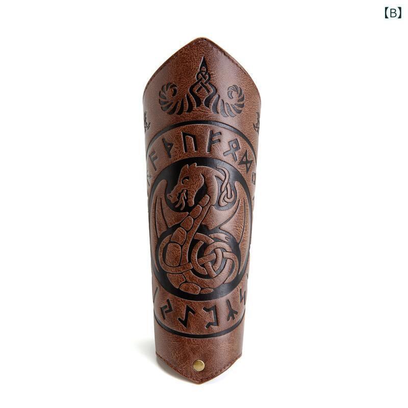 リストガード 腕プロテクター 中世 ルネサンス ヨーロッパ バイキング 型押し エンボス加工 PUレザー フェイクレザー コスプレ 衣装 道具 グッズ イベント 仮装 ハロウィン用 ブラック ブラウン コーヒー | cybercart
