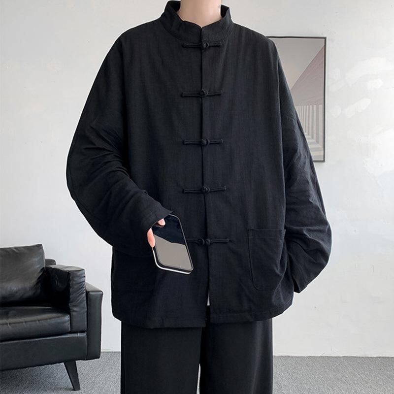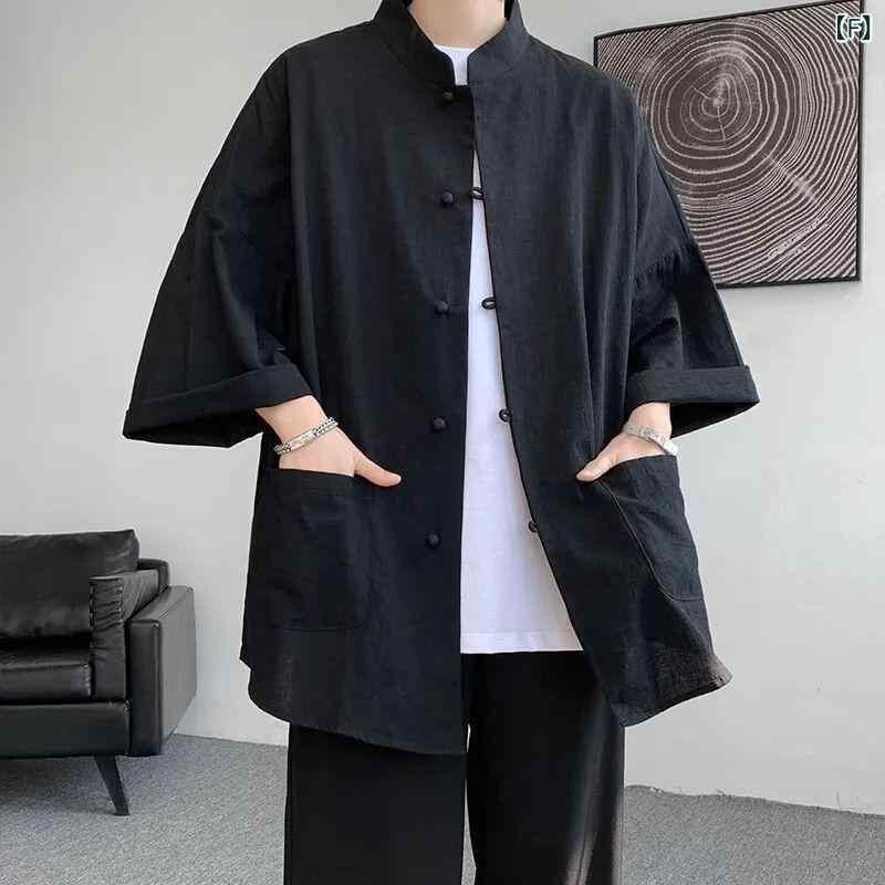 羽織り メンズ 詰襟 シャツ 夏 麻 リネン 半袖 七分袖 道袍 唐装 中国風 中国風 漢服 馬褂 中華風 中国風 アウター