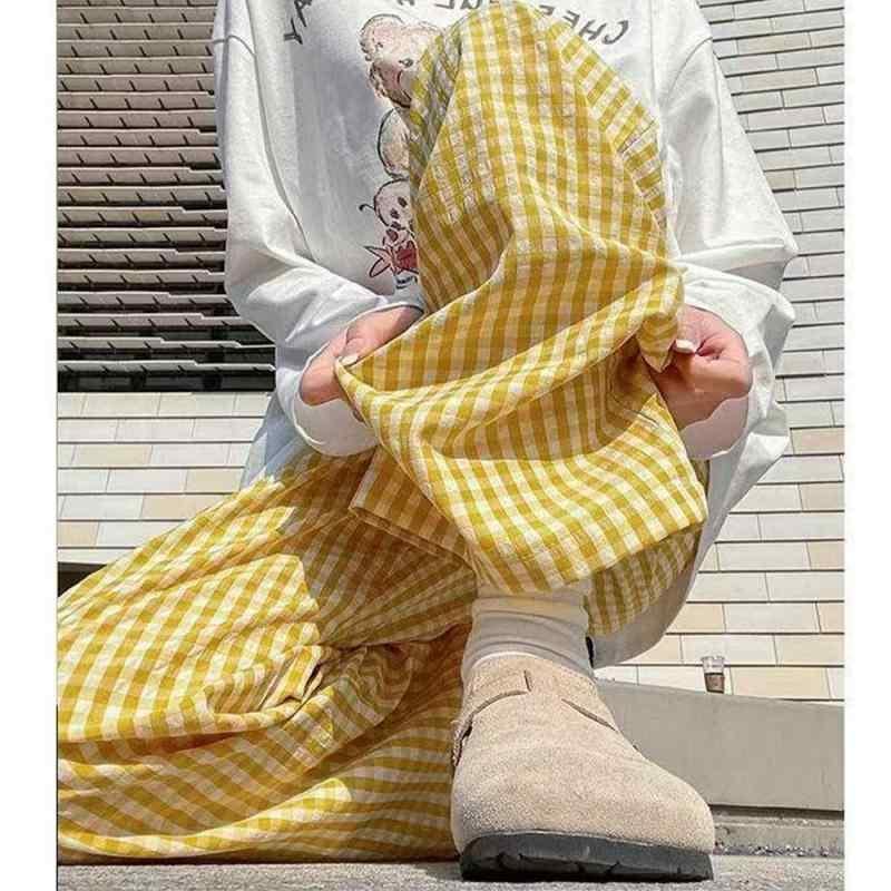 ルームウェアパンツ レディース 夏 ゆったり 落ち感 チェック柄 カジュアル リラックス ウエストゴム さらさら ワイドパンツ
