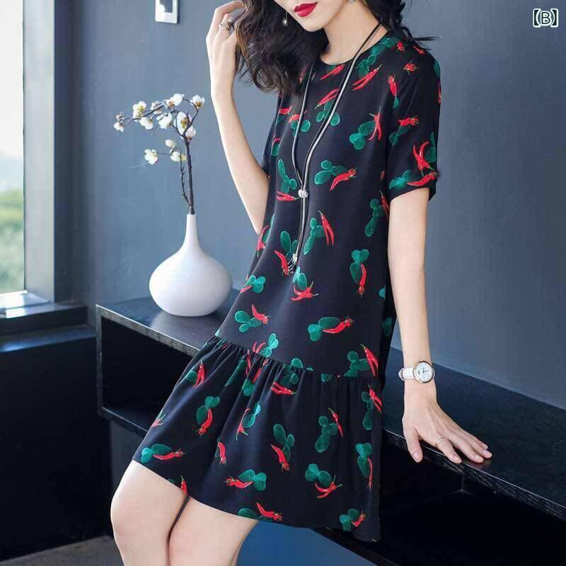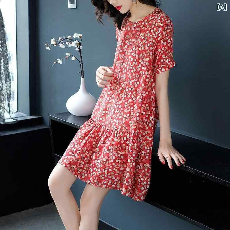 ワンピース レディース 春夏 韓国 小花柄 ゆったり 大きいサイズ 体型カバー ママ服 レトロ シンプル カジュアル おしゃれ