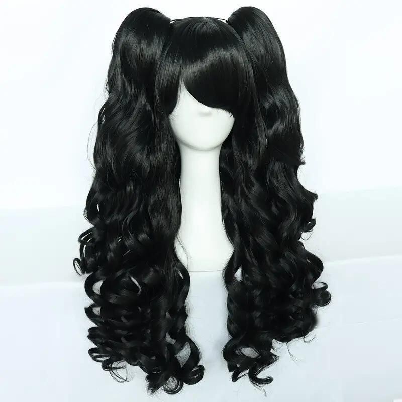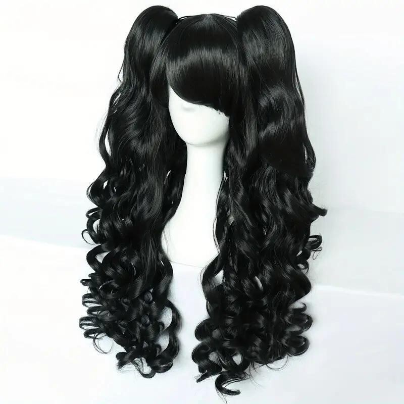 ウィッグ レディース ロリータ コスプレ ロング 大波ウェーブ ツインテール 高温耐熱ファイバー 自然な質感 さらさら ブラック イベント 仮装