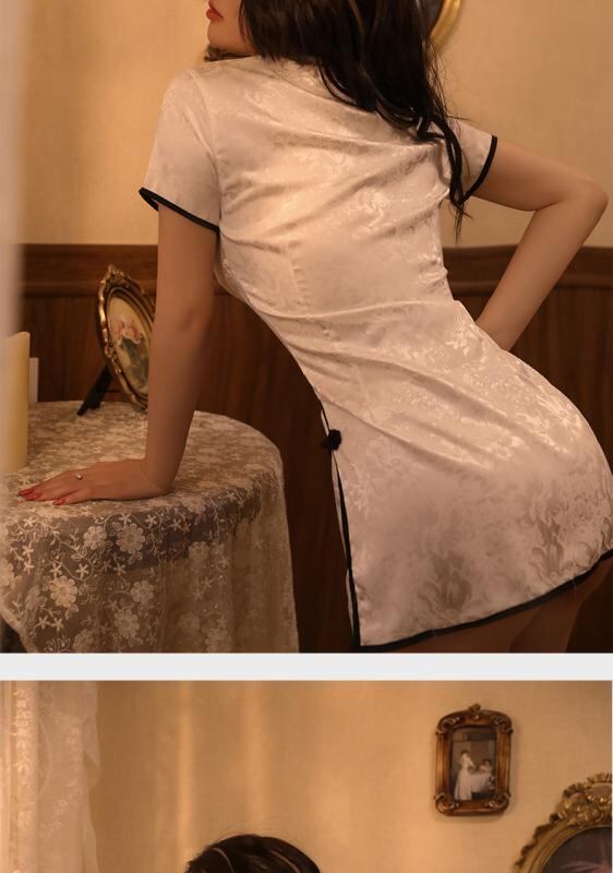 コスチューム レディース セクシー ランジェリー チャイナドレス 制服風 レトロ 中華風 ショート丈 ミニ丈 スリット入り コスプレ 衣装 ポリエステル素材 ブラック ホワイト レッド