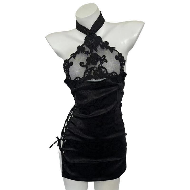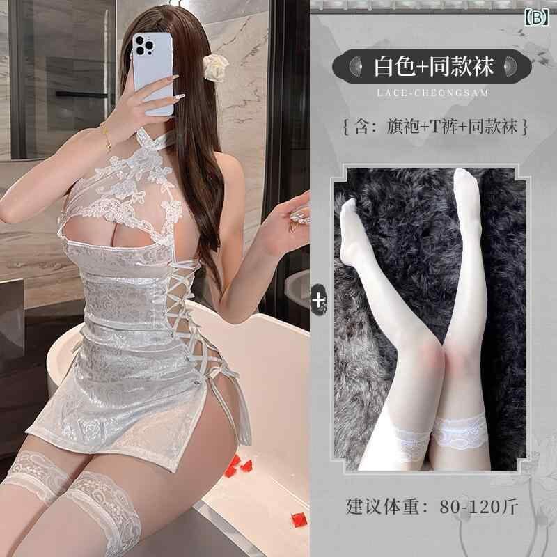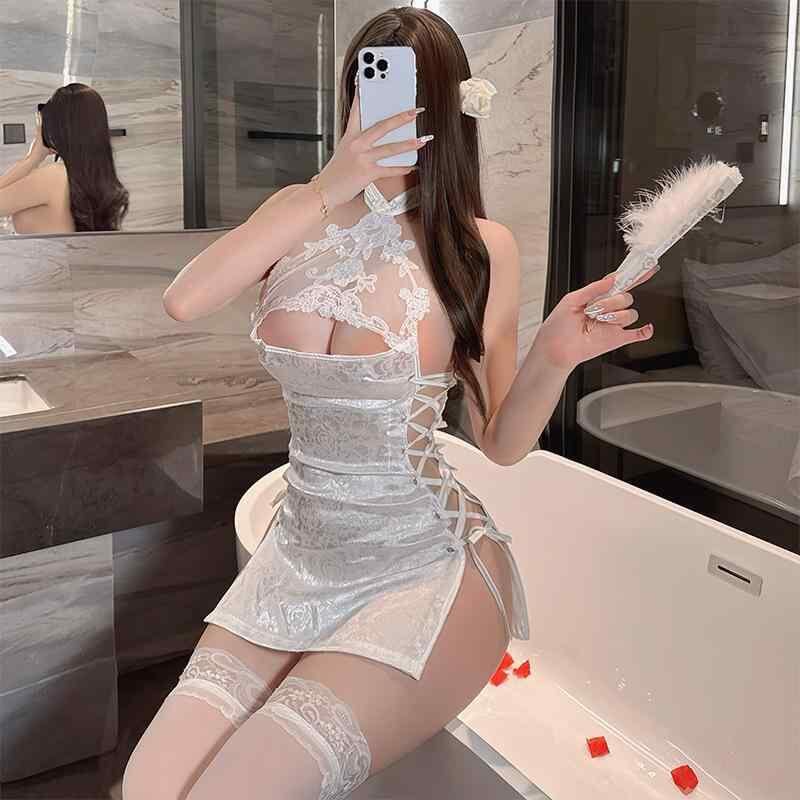 ランジェリー レディース かわいい セクシー チャイナドレス コスチューム 編み上げ セットアップ ナイトウェア ルームウェア 大人 インナーウェア 伸縮性 ポリエステル素材 ホワイト ブラック