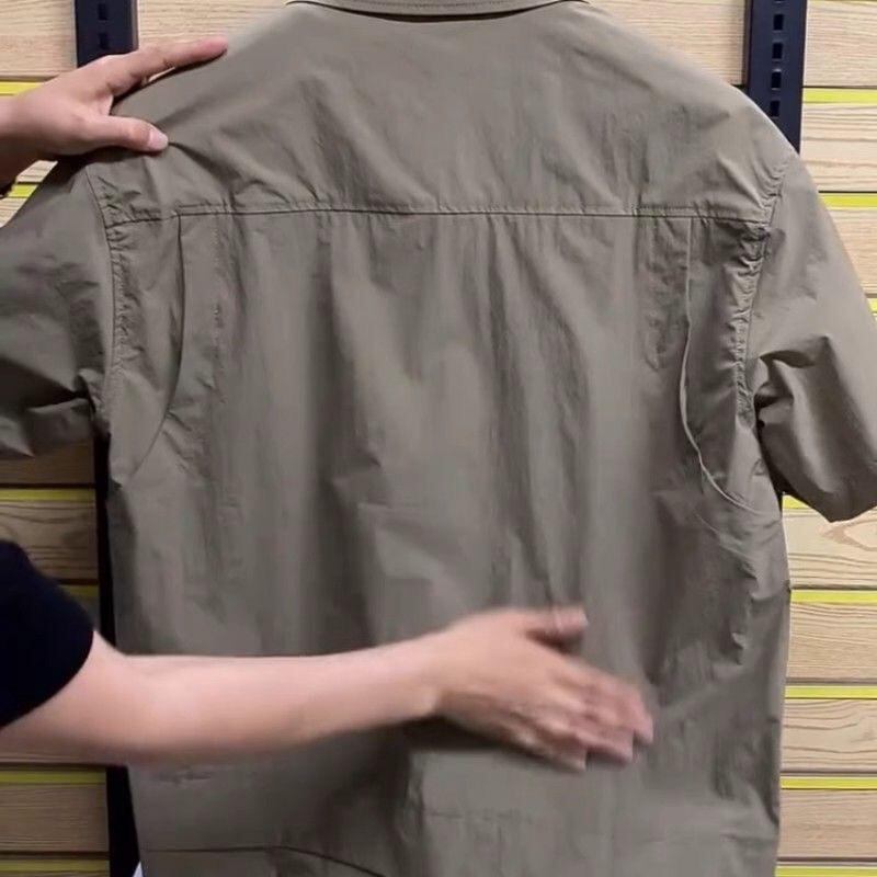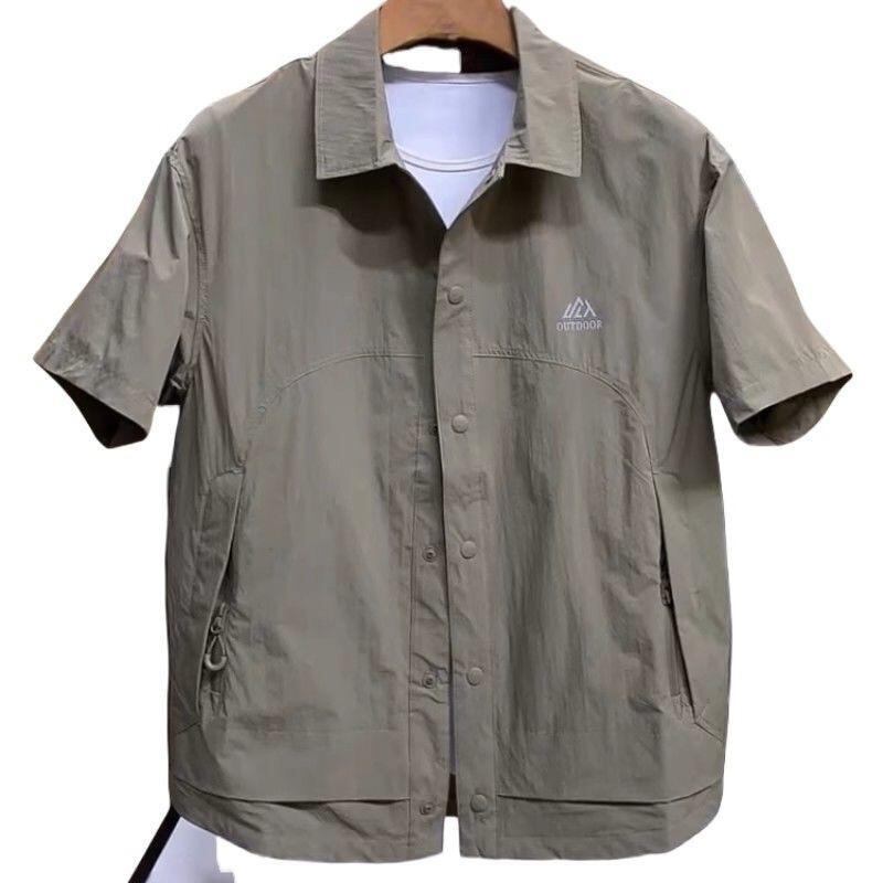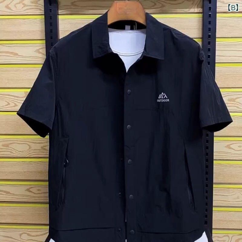 シャツ メンズ 半袖 開襟シャツ 薄手 ルーズフィット ワークシャツ カジュアル 無地 ポケット付き ビッグシルエット ゆったり 通気性 キレイめカジュアル カーキ ブラック