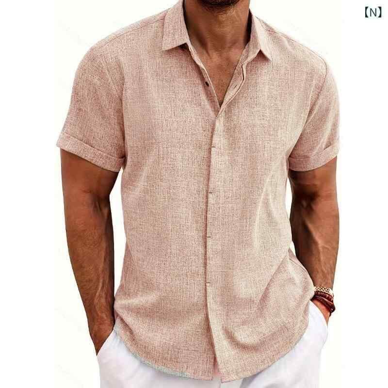 シャツ メンズ 半袖 リネン 綿麻 ゆったり ルーズ ビッグシルエット 開襟 無地 通気性 快適 涼しい 耐久性 カジュアル ビーチ リゾート 普段使い ストリートファッション 大きいサイズ ホワイト ブラック ブルー グレー 豊富なカラー