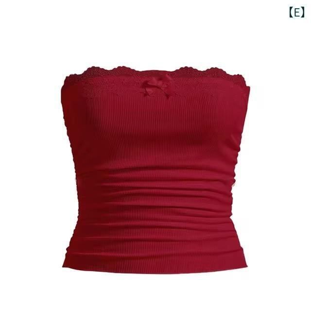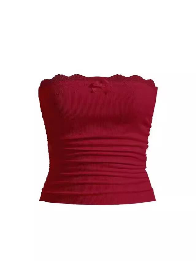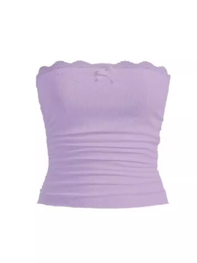 ブラトップ レディース チューブトップ レース フリル 無地 ポリエステル 欧美風 ストリート ホワイト バイオレット スカイブルー ブラック レッド ピンク ダークグレー S M L