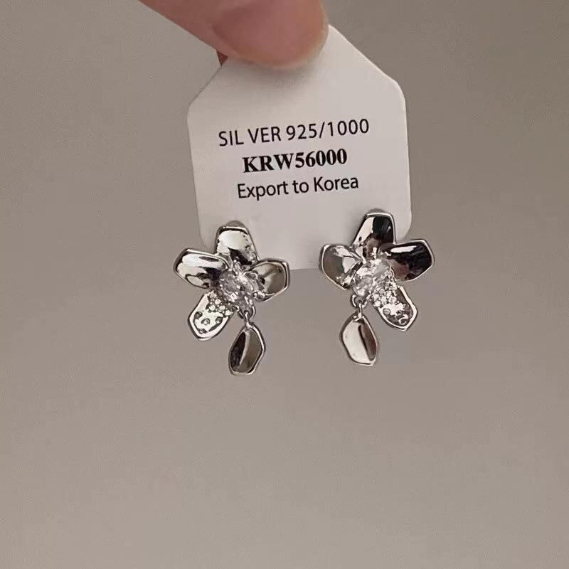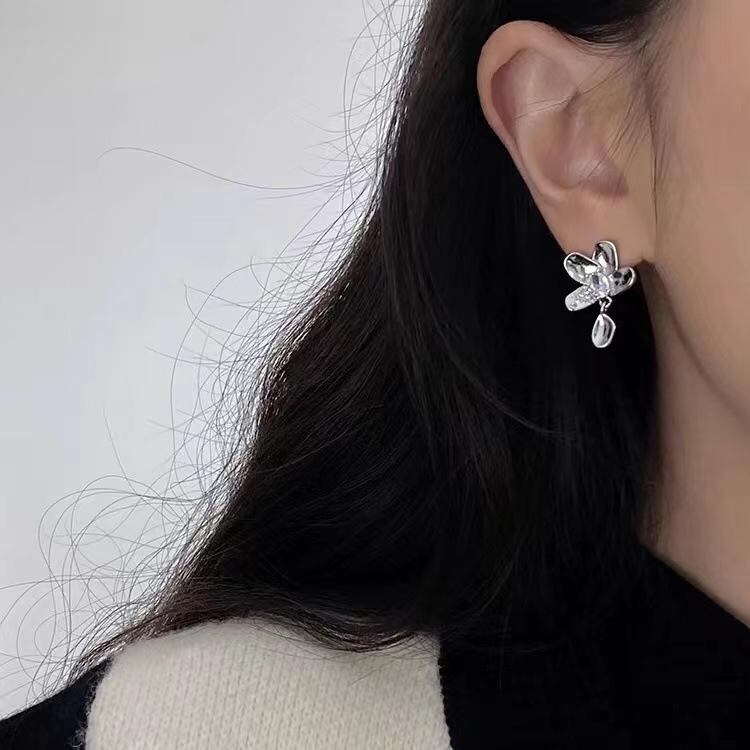 ピアス レディース 女性用 デイジー フラワーモチーフ シルバー メタル スタッドピアス 高級感 シンプル 上品 エレガント クール 耳飾り