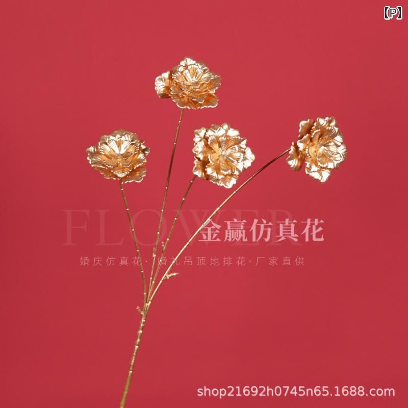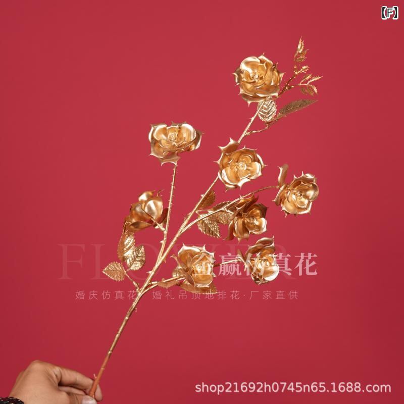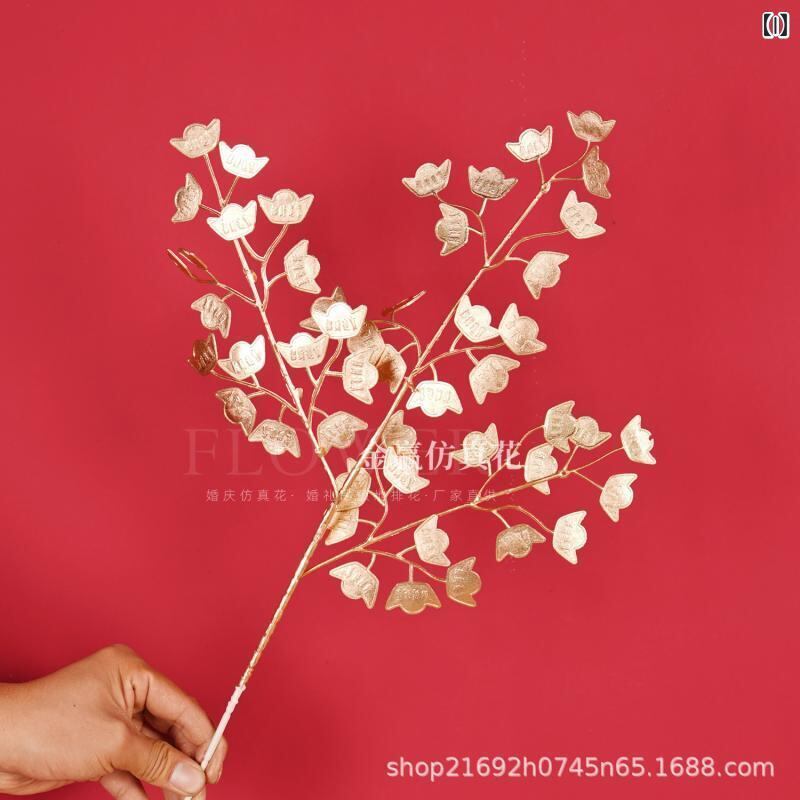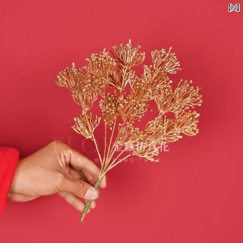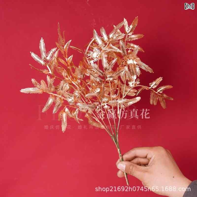 造花 ゴールド系 フェイクフラワー 金色 ヤシ ユーカリ イチョウの葉 バラ ユリ アジサイ ホーリー 結婚式 お祝い インテリア装飾 正月飾り 縁起物 花材 アレンジメント プラスチック製
