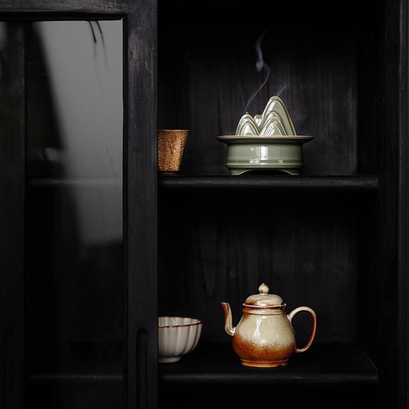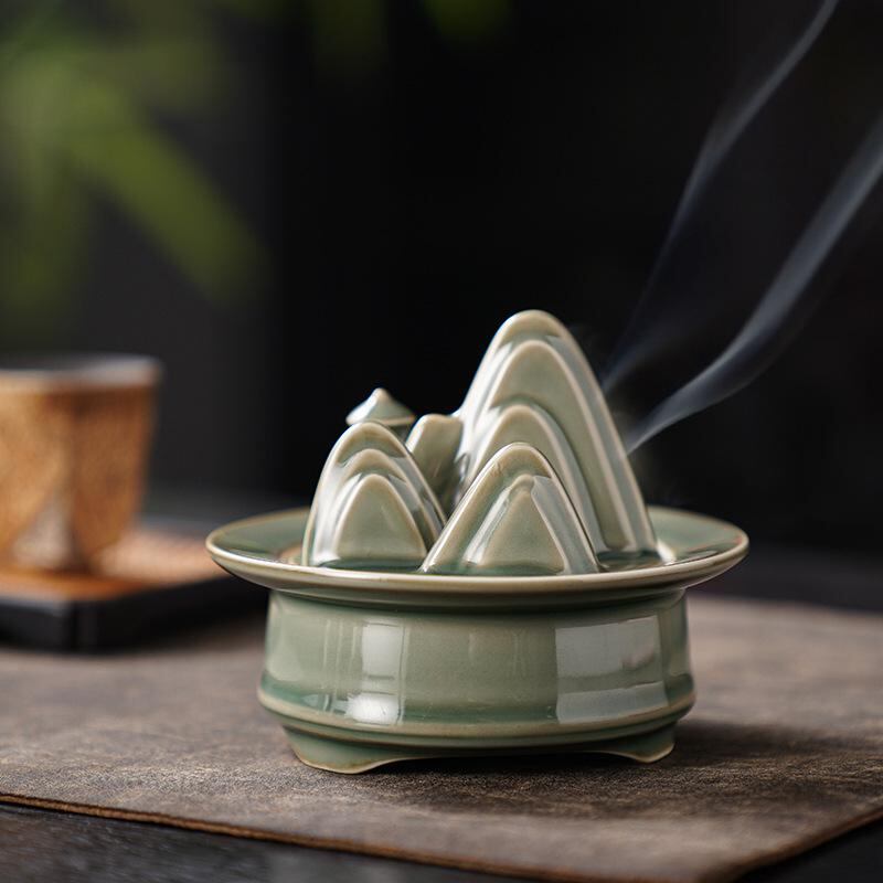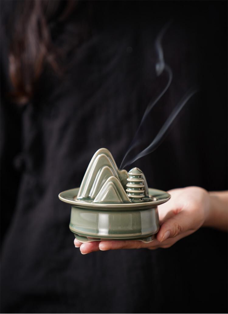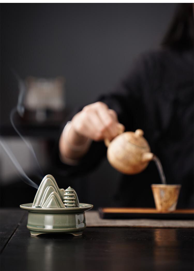 香炉 陶器 禅意 青山 中国風 お香立て 線香立て 室内用 リビング 書斎 寝室 茶室 茶台 置き物 インテリア雑貨 白檀 沈香 渦巻線香 コーン香 スティック香 兼用 リラックス 癒やし 瞑想 精神統一 上品 高級感 和風 モダン