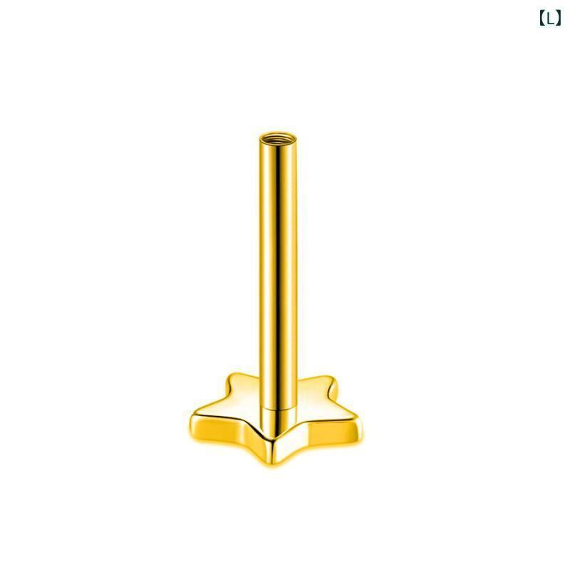ボディピアス 男女兼用 F136チタン製 インターナルスレッド 内ネジ フラットバック ラブレットスタッド バー スクエア 五芒星 ハート 月形 ラウンド 三角形 シンプル 軟骨ピアス 舌ピアス シルバー ゴールド