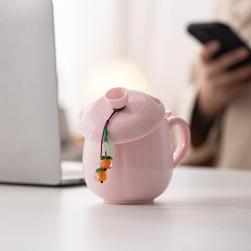 茶器 蓋用チャーム 琉璃 ガラス細工 手作り 好柿成双 柿モチーフ ミニペンダント 開運 縁起物 中国風 茶道具 装飾品 茶道小物