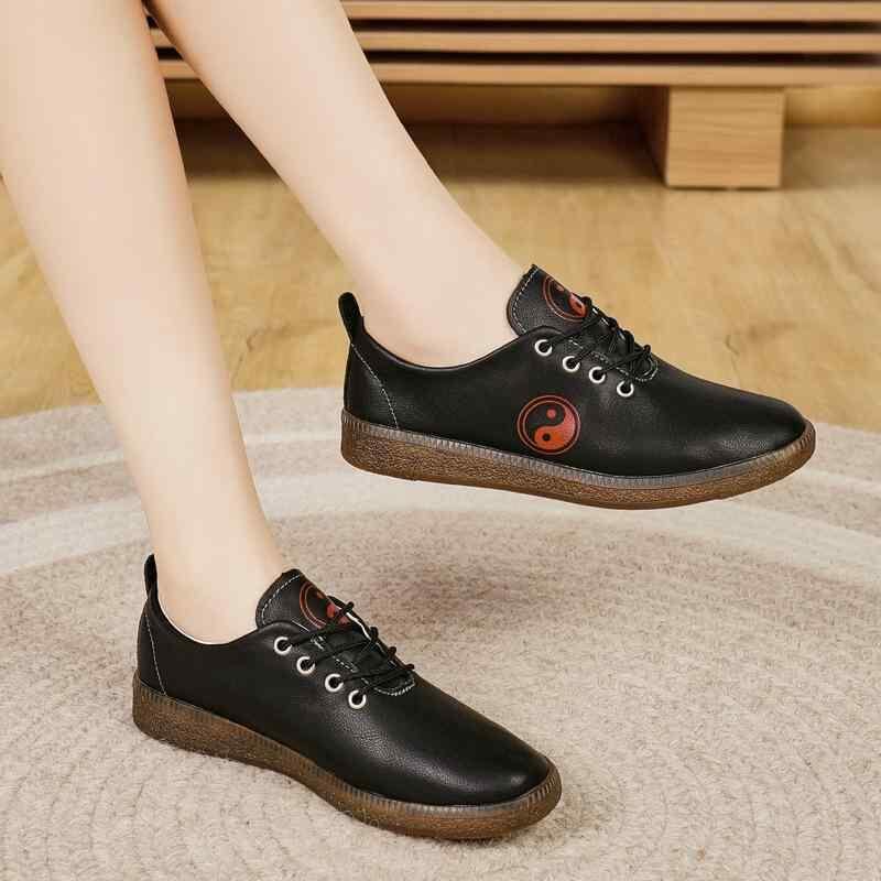 太極拳シューズ レディース 女性用 柔らかな本革アッパー 牛革 コンフォート スリッポン 着脱簡単 太極拳 練功 練習用 スポーツ 運動靴 カジュアル 普段使い ラウンドトゥ 低ヒール フラット 春夏秋 白 黒