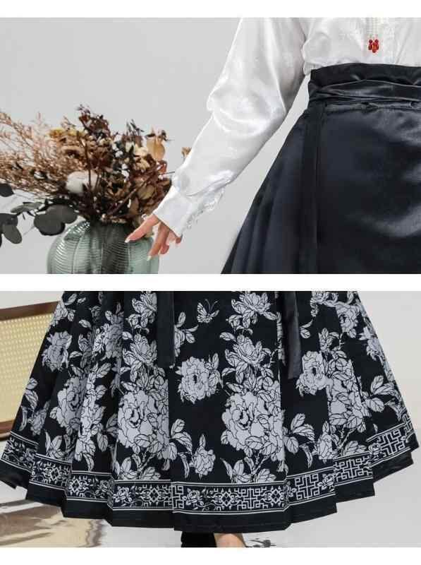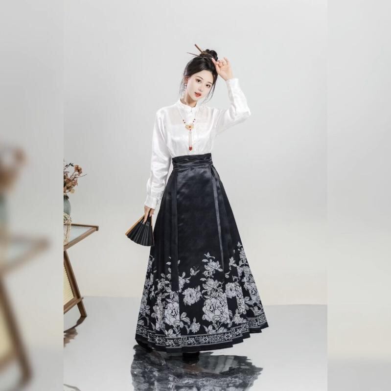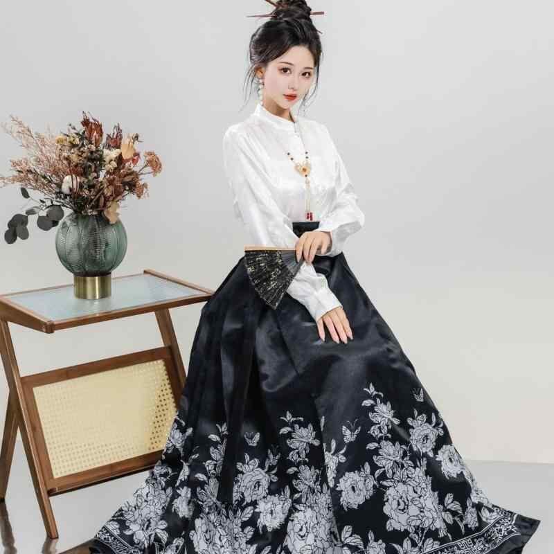 漢服 レディース 新中式 上下セット 改良型 馬面スカート スタンドカラー ジャカード織り 織柄 秋冬 ポリエステル素材 日常使い 普段着 通勤 オフィス カジュアル