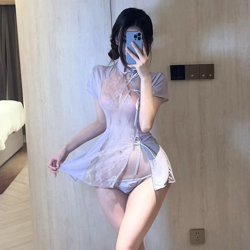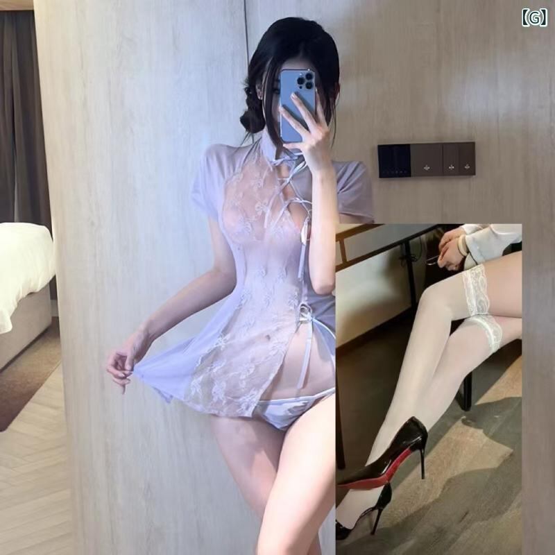 チャイナドレス レディース セクシー ランジェリー レース メッシュ シースルー 透け感 オープンバスト オープンクロッチ コスプレ ポリエステル 古風 かわいい フリーサイズ 多色展開 ドレスセット