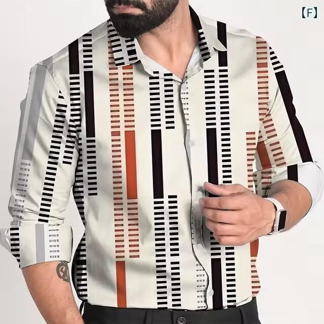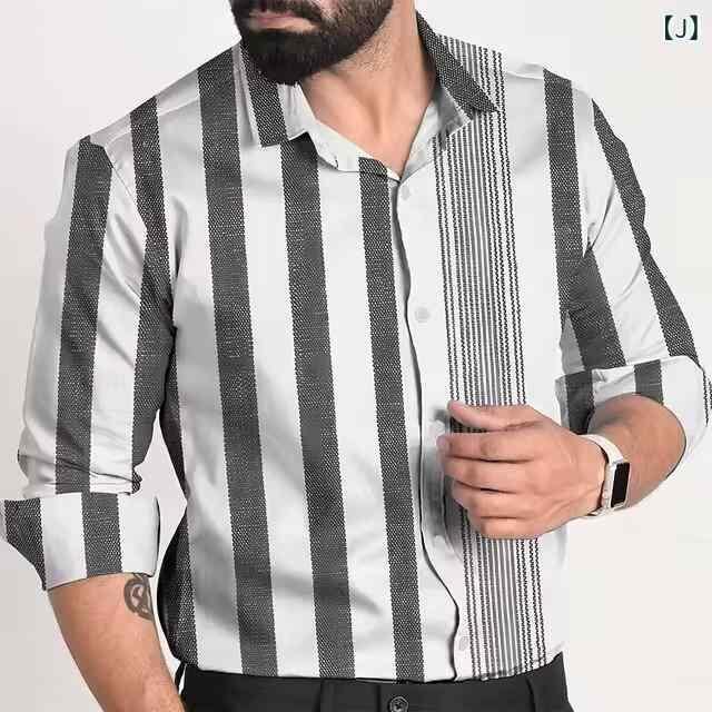 シャツ メンズ 男性用 ストライプ 切替 高級感 3Dデジタルプリント ファッション 長袖 スリムフィット ボタンダウンカラー 綿素材 四面ストレッチ 大人カジュアル 普段使い 春秋