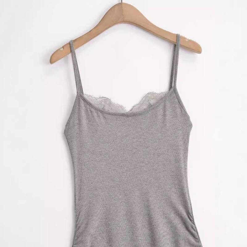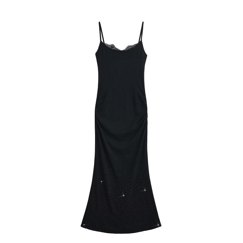 ワンピース レディース マーメイド ロング丈 キャミソール ラインストーン レース ニット素材 ウエストシェイプ 細見え タイトシルエット ハイウエスト 大人の色気 エレガント ブラック グレー