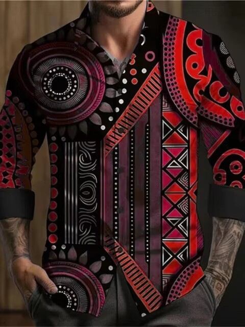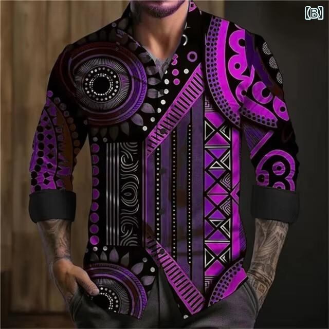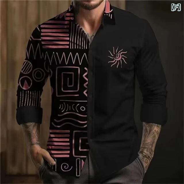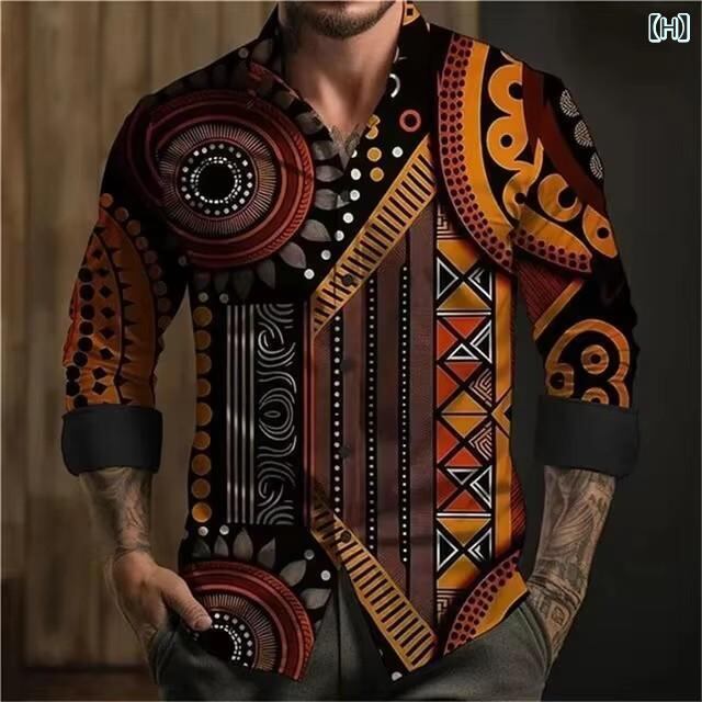 シャツ メンズ カジュアル 長袖 3Dデジタルプリント レトロ ストリートスタイル 高級感 スリムフィット 綿混ストレッチ素材 ボタンダウンカラー 大人カジュアル